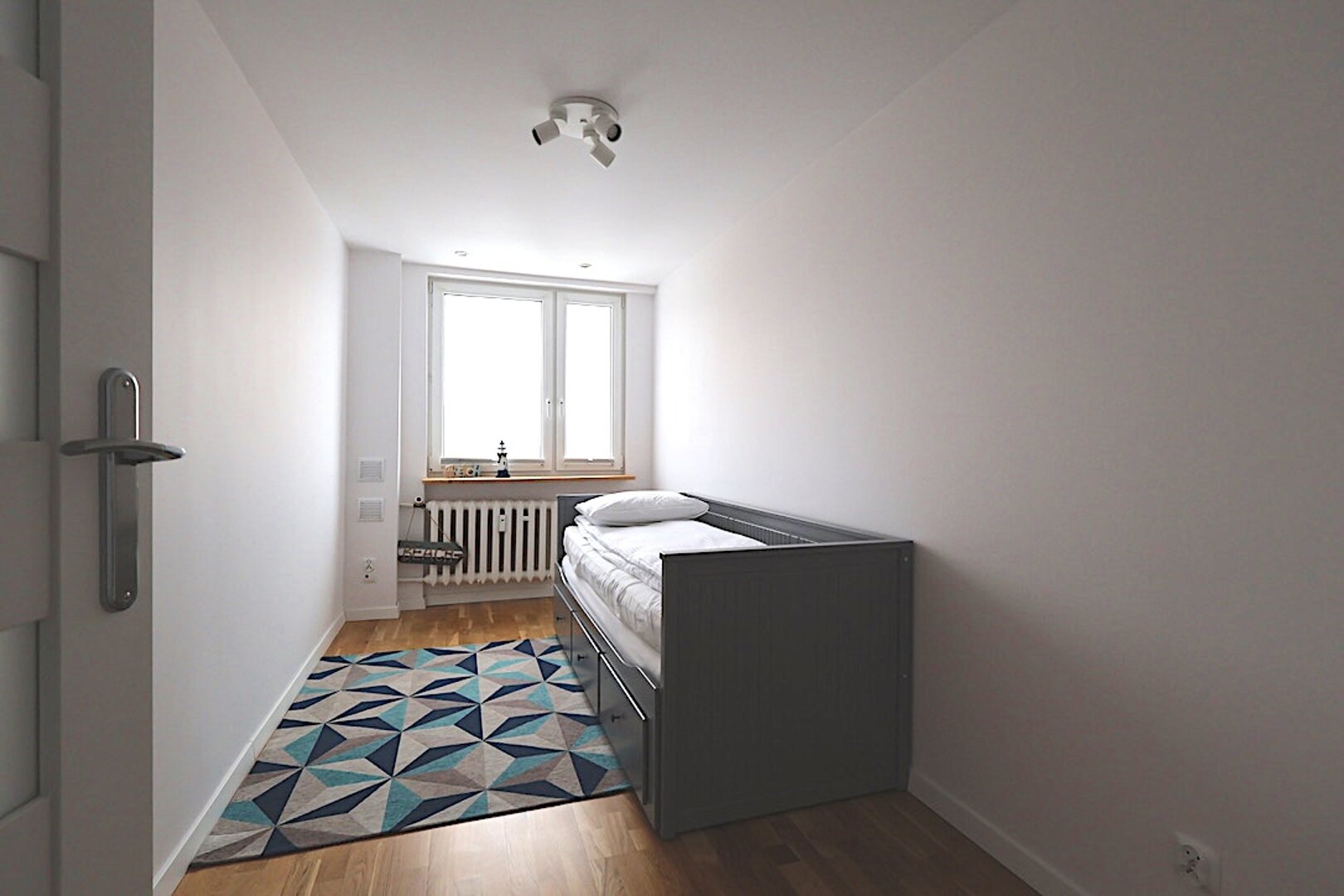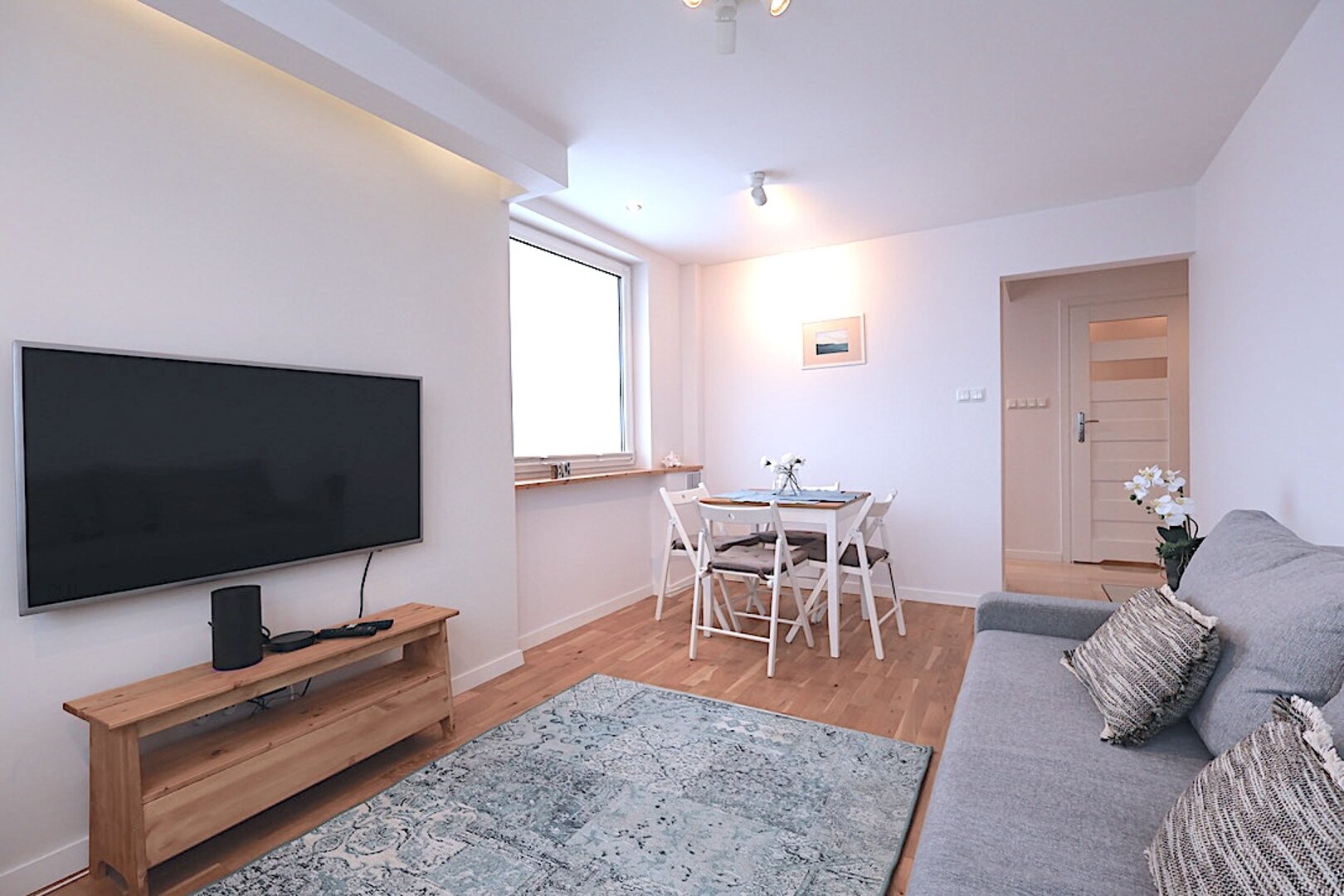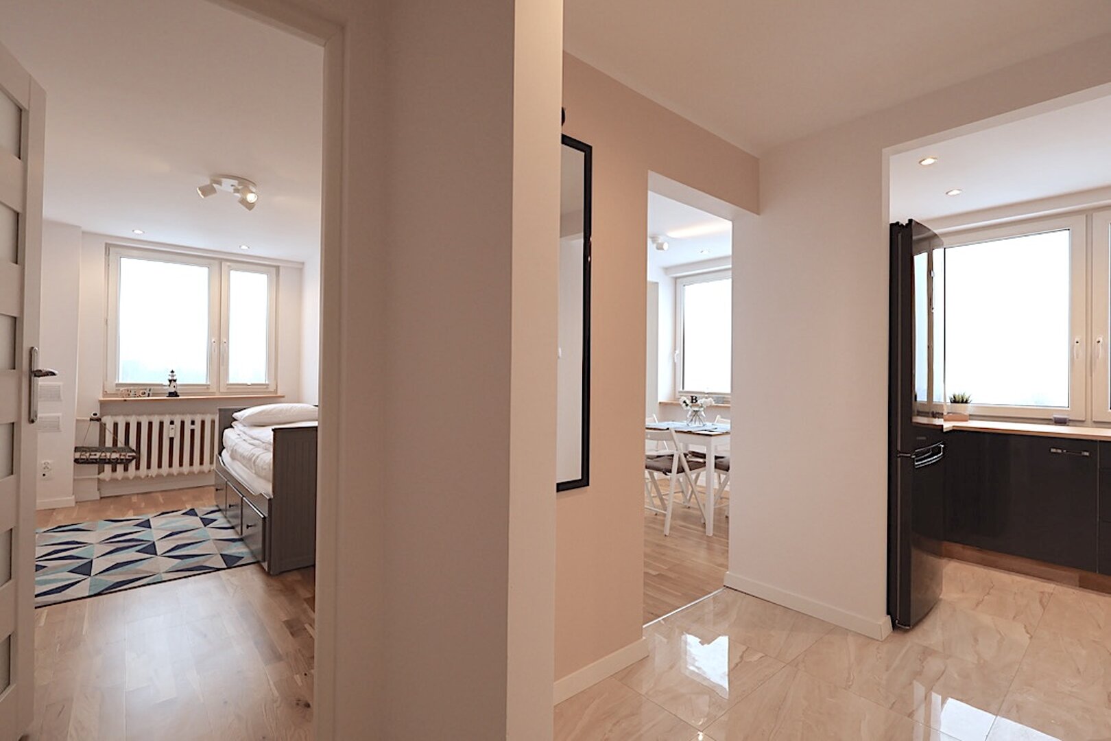 W układ mieszkania wchodzi: 2x sypialnia, salon z wyjściem na mały balkon, kompleksowo wyposażona kuchnia przedpokój oraz łazienka otwartą wanną.